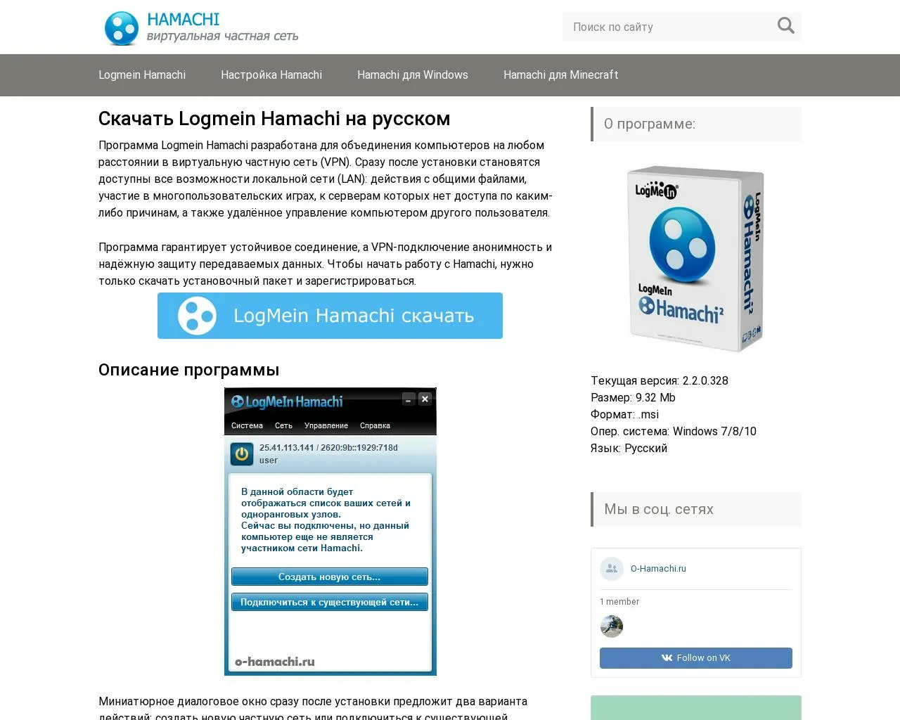 | Версия Hamachi | ОС | Язык | Размер | Тип файла | Загрузка |